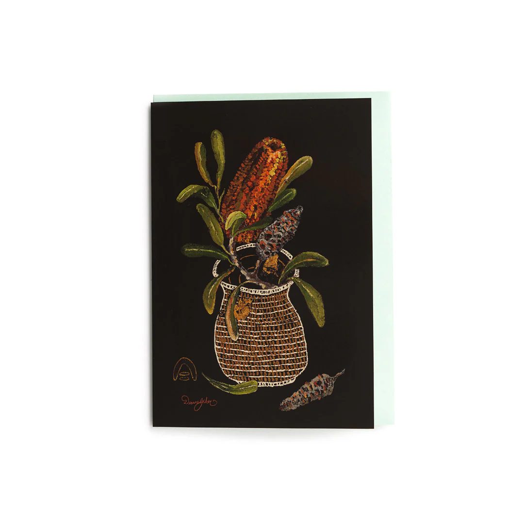 These greeting cards haveĀ been made in collaboration with artist Deanne Gilson, featuring Gilsonās artwork Karrap Karrap Beenyak Mundi-gurrk - Baskets of Knowledge.